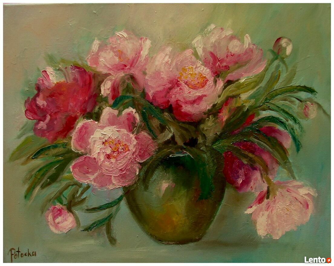 Piwonie obraz olejny 40cm-50cm na płótnie. Sygnowany, werniksowany.Sprawdź zainteresowanie tym ogłoszeniem